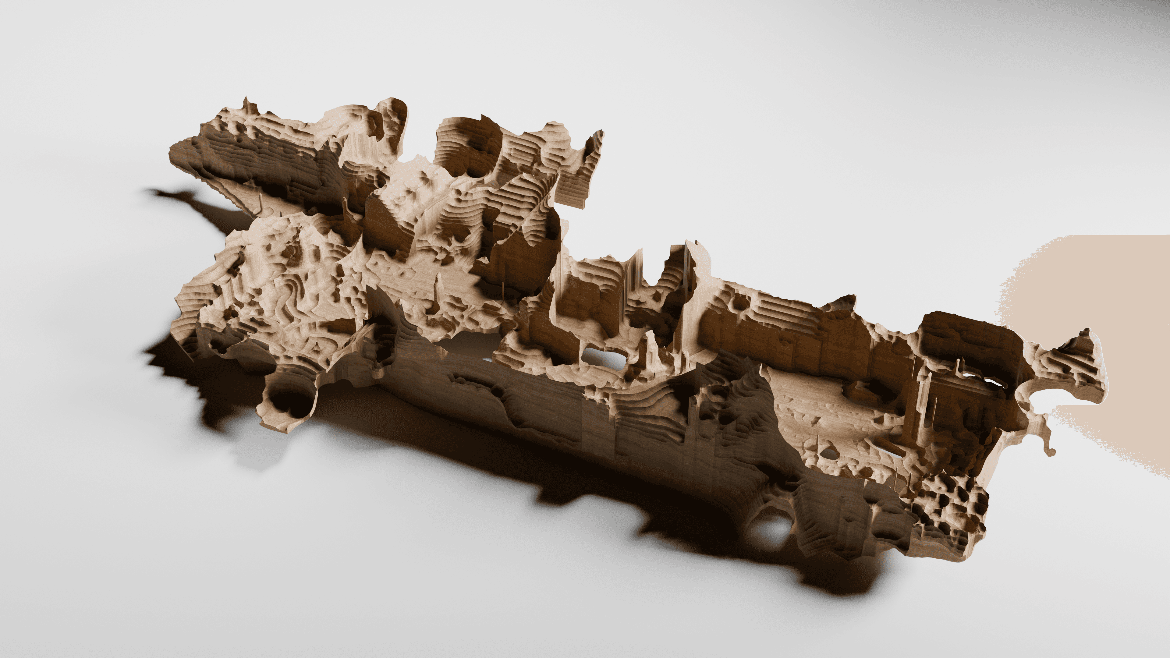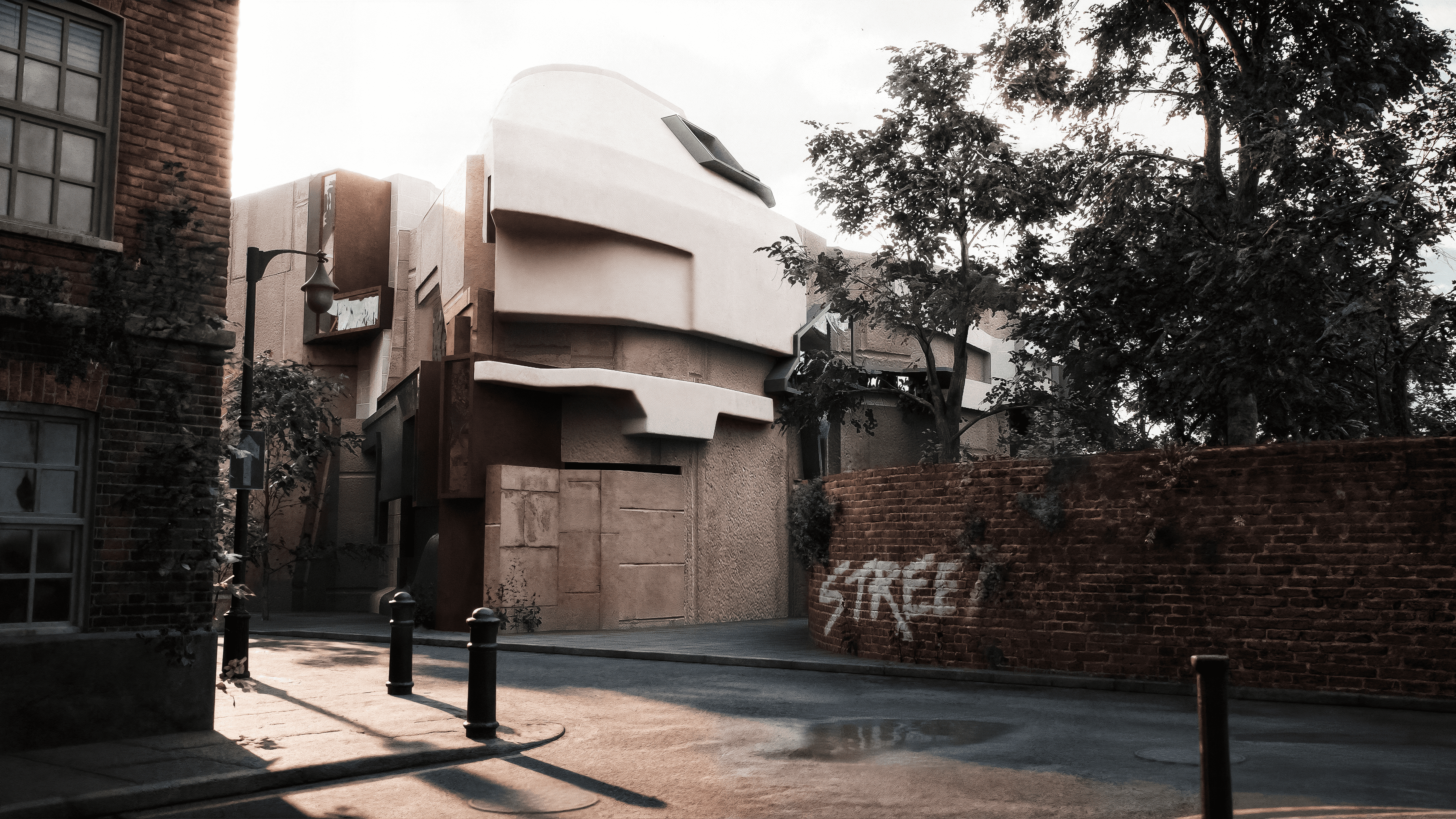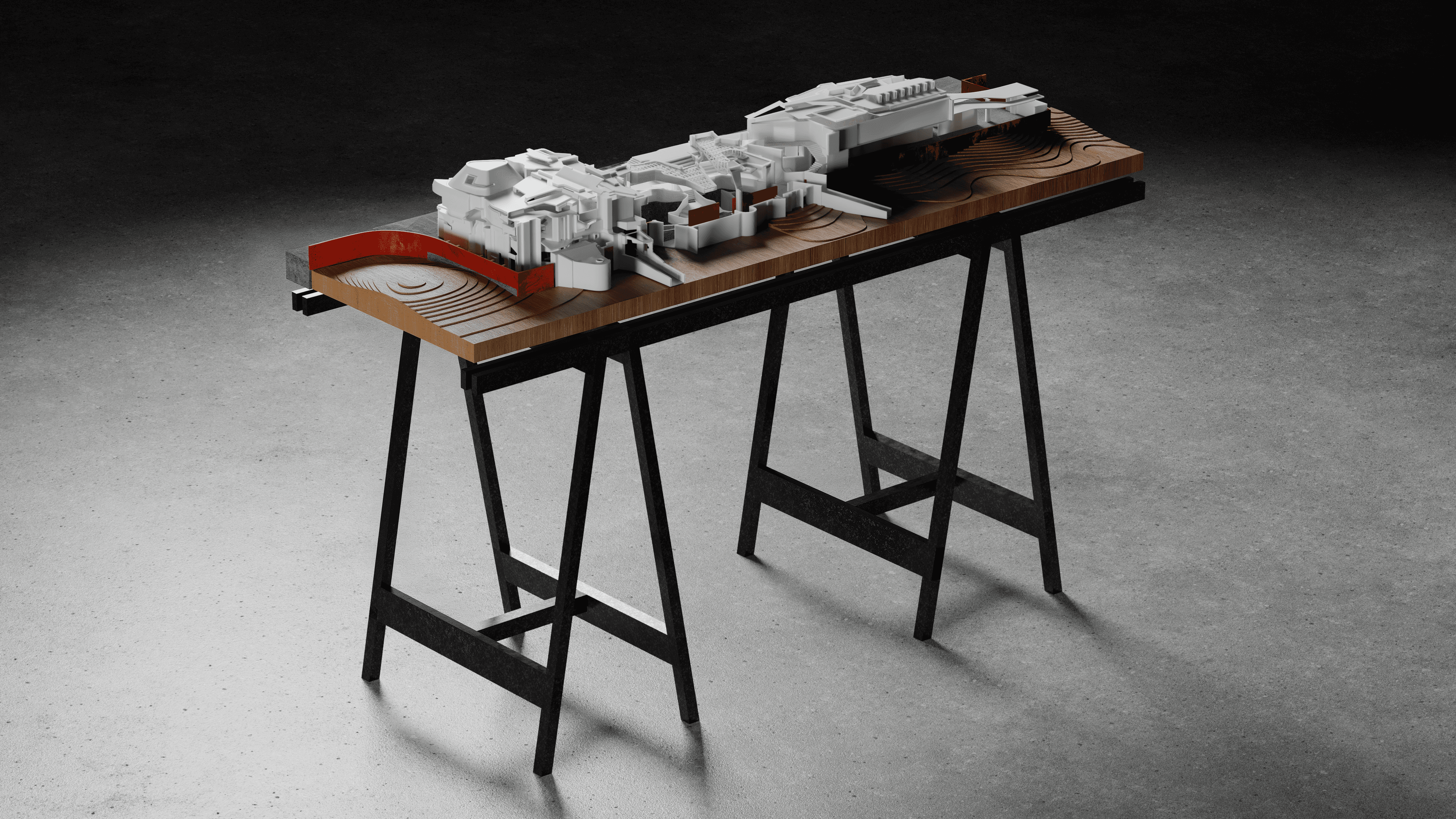 Building upon this, I constructed a “site” model of my own creation, which intersects with the real site. The point cloud was converted into surfaces of varying resolution, with embedded entourage elements becoming design drivers: wooden plinths represent the measured environment, while scan noise erodes straight lines and pulls the architecture towards a mirage-like state. In this approach, I sought to shape architecture not only for human perception but also for the machine vision of LIDAR.