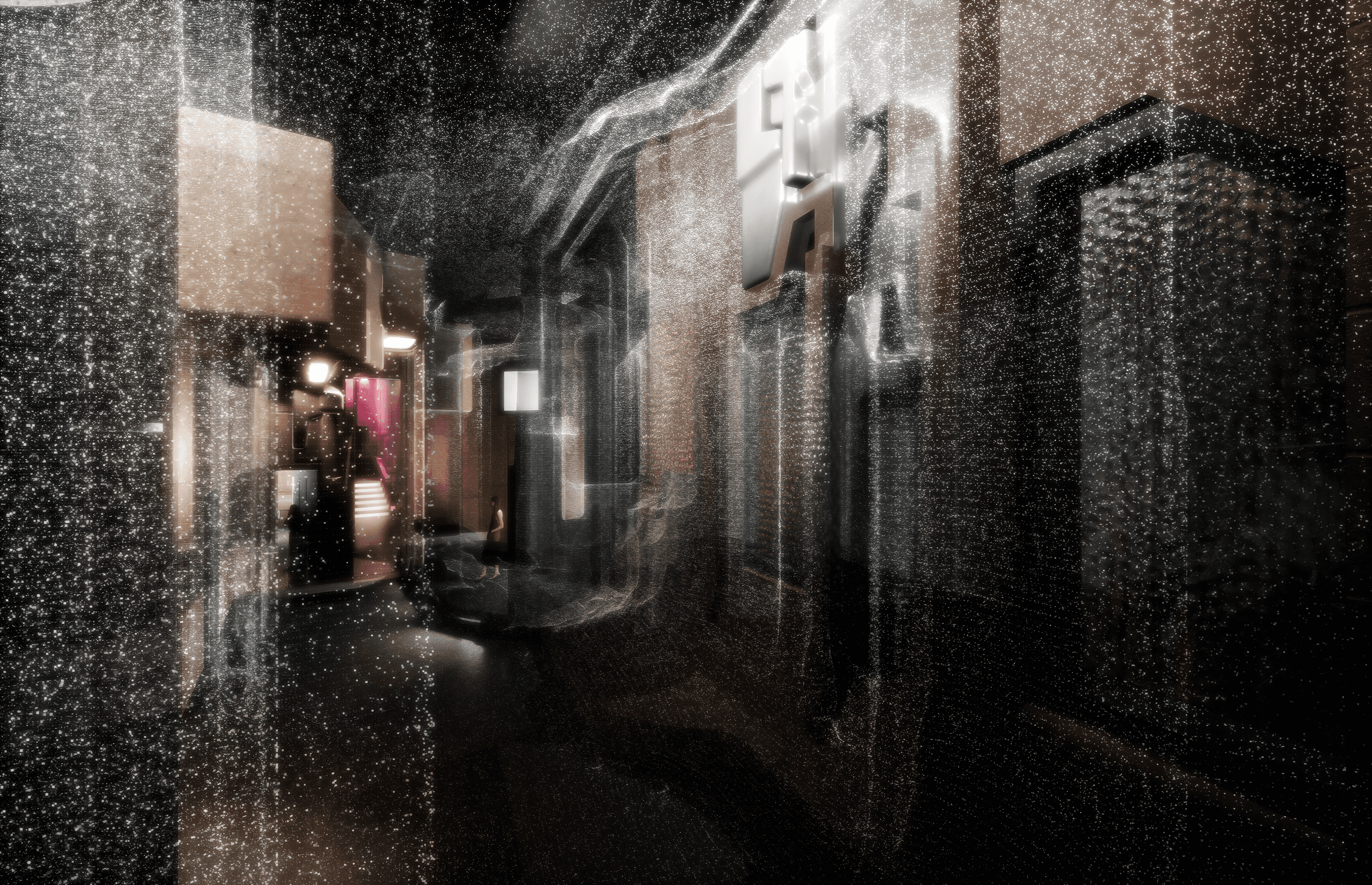 In the scanning process of the site, a theoretical minimum of 20 scans is normally required to comprehensively map the area and avoid the creation of undetectable voids within the scan data. However, for this project, the number of scans was deliberately reduced. This reduction in data capture allowed for the dynamic movement of the site's entourage to partially obscure and distort the scanned environment. As a result, the rendered site diverges from its real-world counterpart, showcasing a manipulated perception influenced by selective data acquisition.